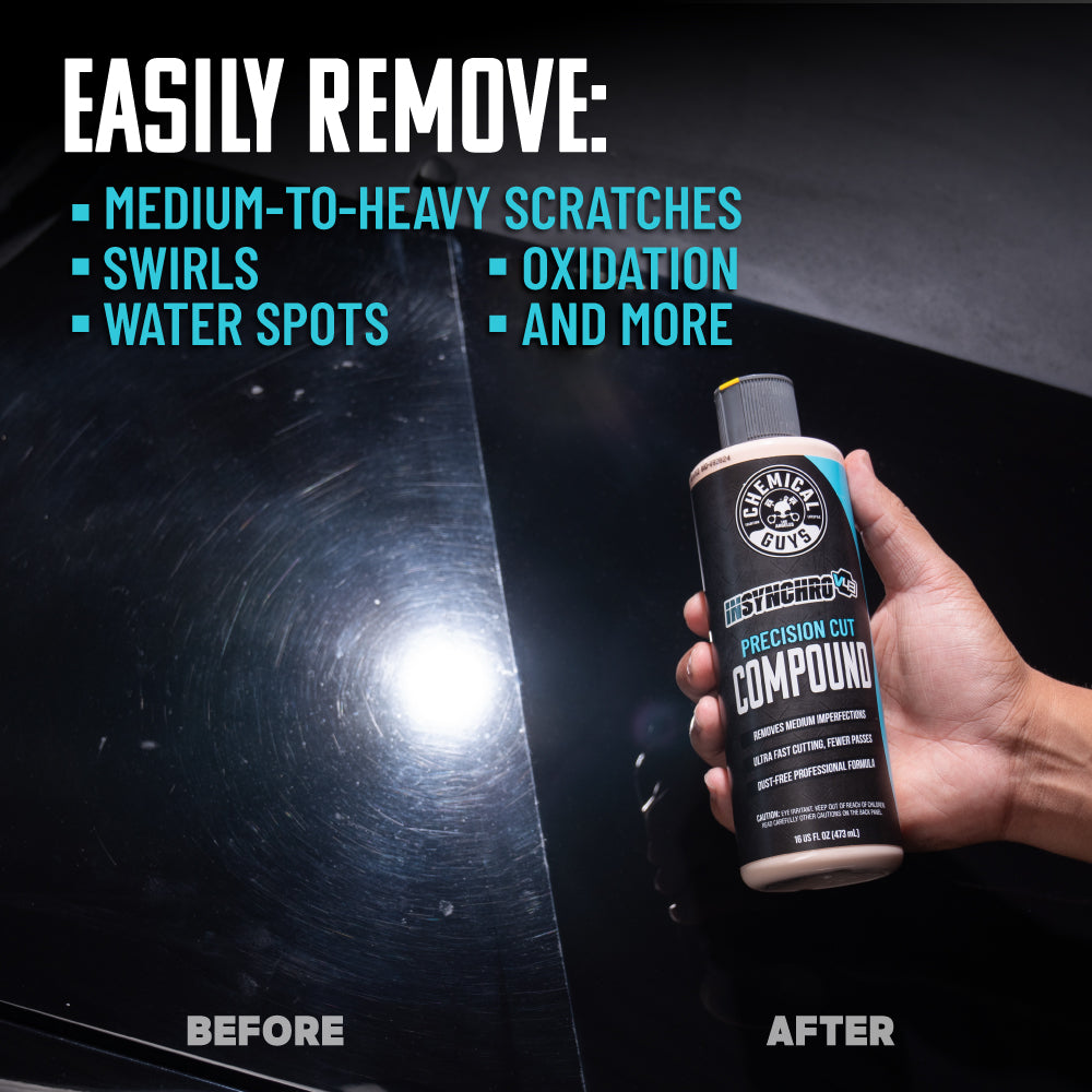 InSynchro V43 is your go-to solution for swiftly eliminating scratches. swirls. oxidation. water spots. and minor paint imperfections??all without creating a cloud of dust. Thanks to its ultra-refined adaptive abrasives. this polish reduces in size during application. allowing for effective corrections in fewer passes. Protect your vehicle’s surfaces while saving precious time and achieving a flawless finish.