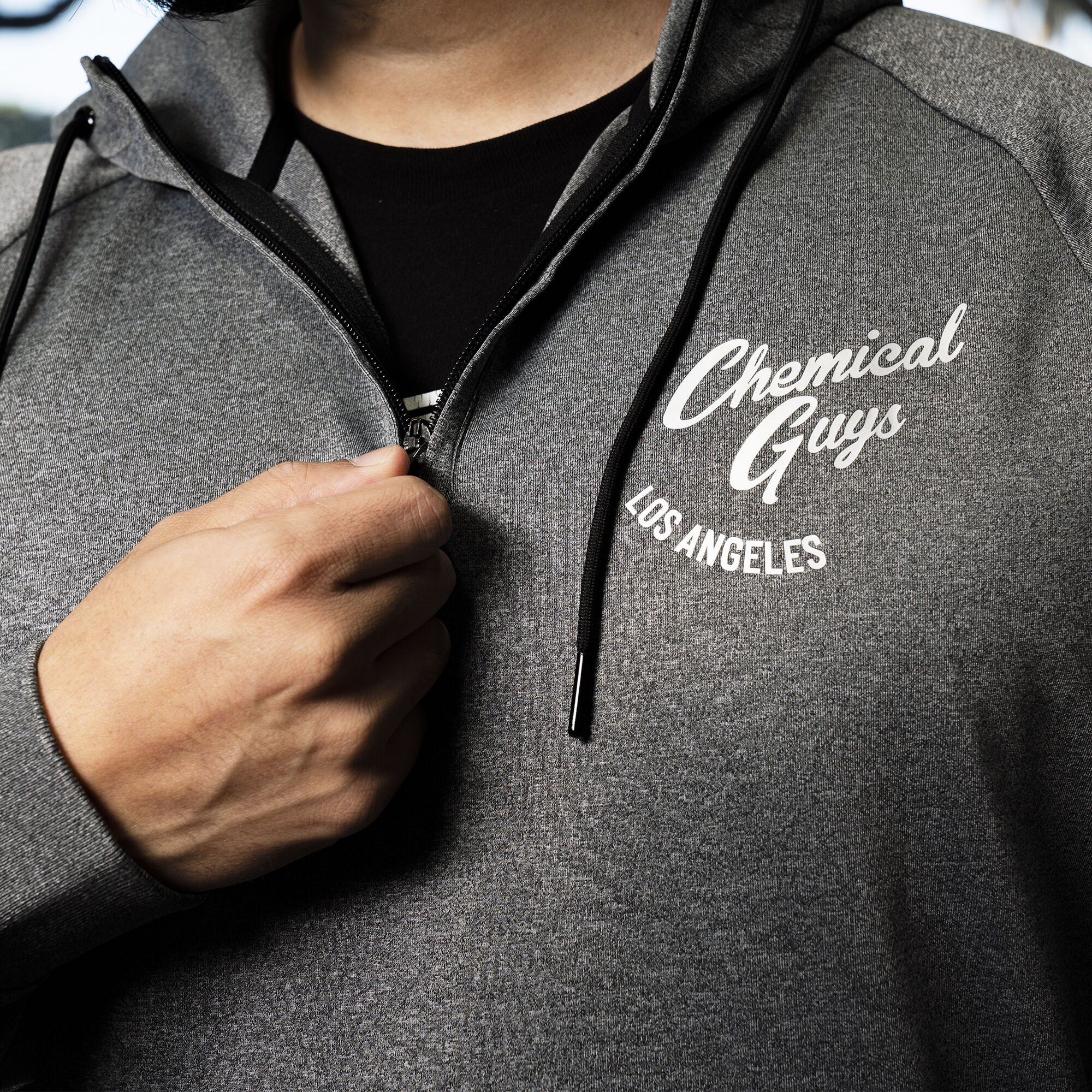 The Chemical Guys Quarter Zip Drip Pullover Hoodie combines a sleek design with unbeatable comfort to create the ultimate do-it-all sweater perfect for all occasions.